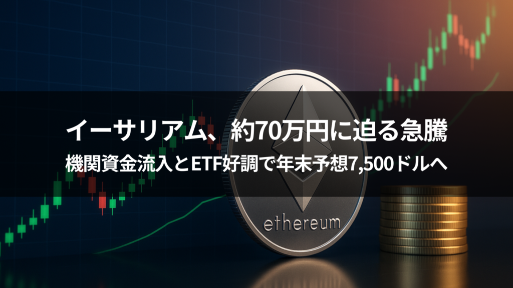 イーサリアム、約70万円に迫る急騰 機関資金流入とETF好調で年末予想7,500ドルへ