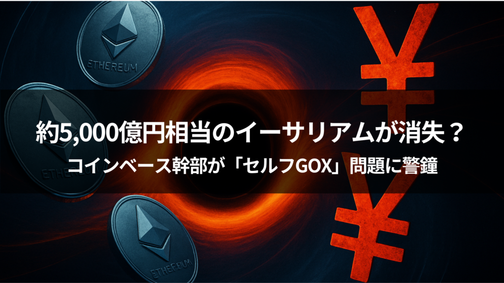 米コインベースのディレクターであるコナー・グロガン氏が、ユーザーの誤操作や技術的トラブルによって、少なくとも時価約5,000億円相当のイーサリアムが永久にアクセス不能になっていると報告しました。セルフGOXとも呼ばれるこの現象は、仮想通貨業界の構造的なリスクの一端を浮き彫りにしています。