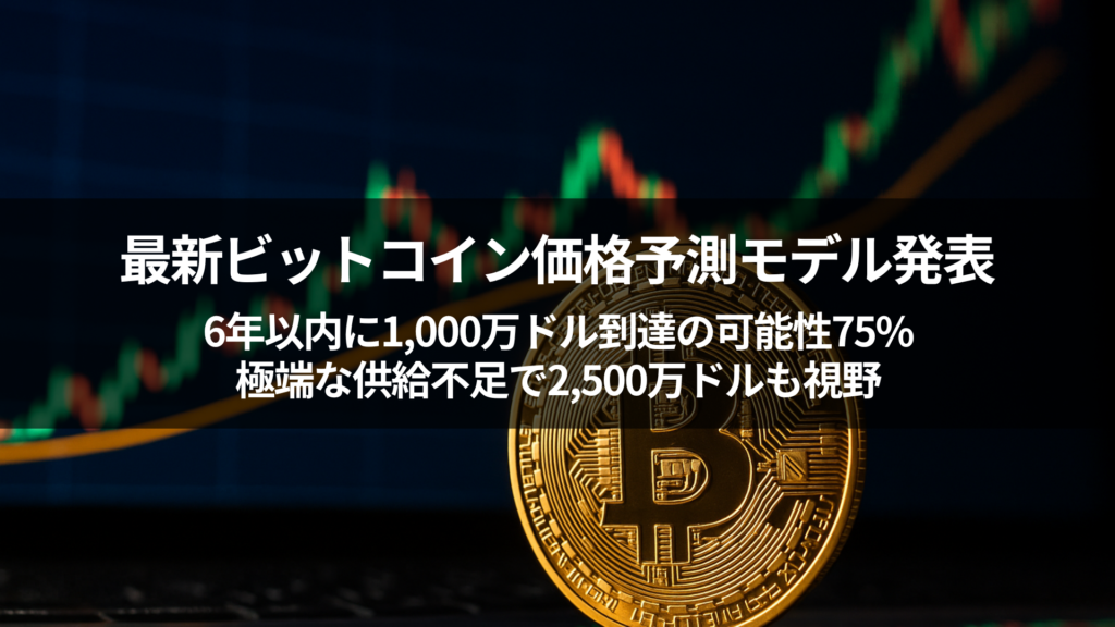 最新ビットコイン価格予測モデル発表、6年以内に1,000万ドル到達の可能性75%—極端な供給不足で2,500万ドルも視野