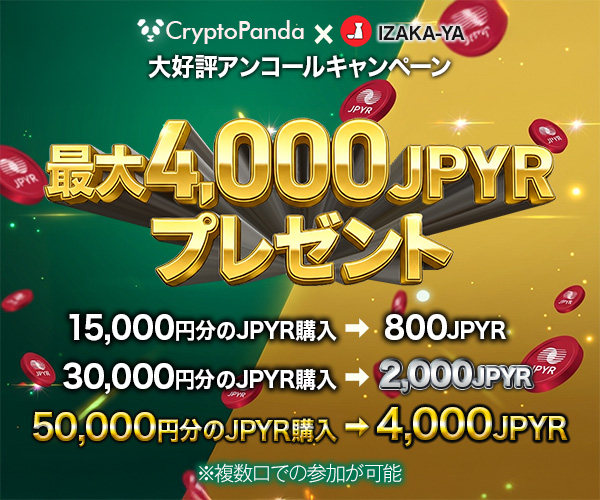 キャンペーン期間中に、CryptoPandaでJPYRをご購入しIZAKA-YAでレンディング