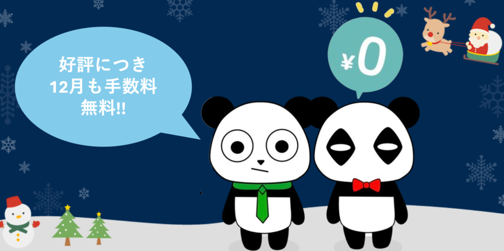 11月も大変ご好評でございました、手数料無料キャンペーンが12月末日まで延長になります。