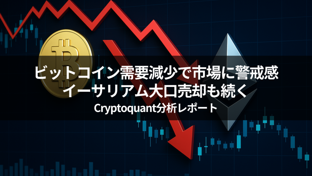 仮想通貨市場において、ビットコインの見かけ上の需要が減少に転じ、価格の下落リスクが高まっているとの分析が注目されています。加えて、イーサリアムでは大口投資家による含み損を抱えた売却が進行中。投資家心理に不安が広がる中、相場の変調を示唆する指標が次々に浮かび上がっています。