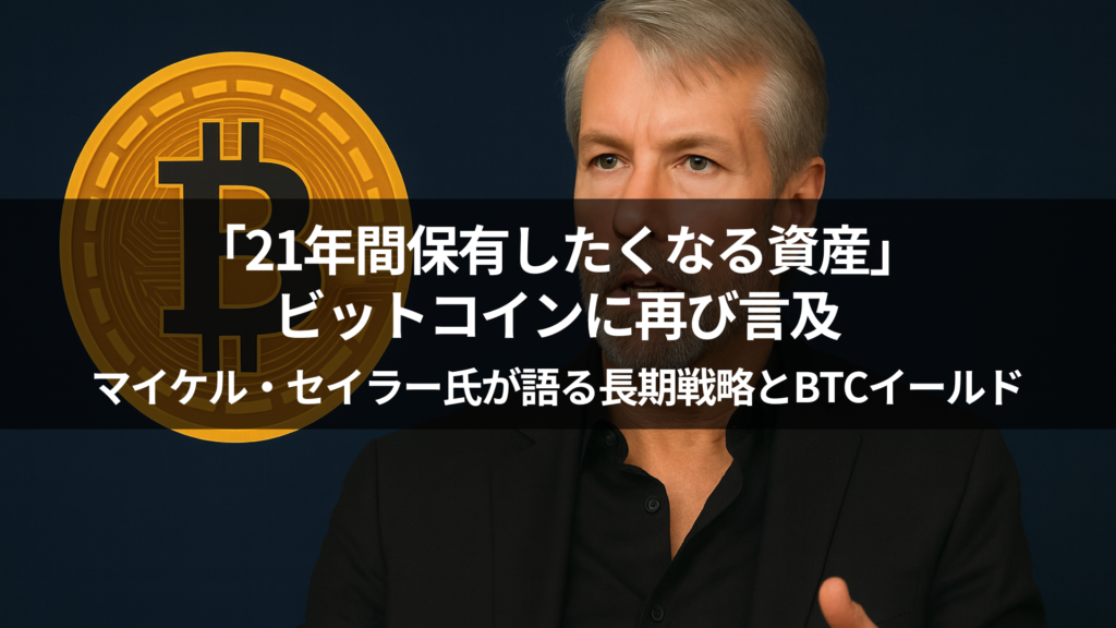 米ストラテジー社のマイケル・セイラー会長が、「ビットコインは21年間保有したい長期資産である」と改めて発言しました。インタビューの中で、ウォール街の過小評価を指摘しつつ、BTCの本質的価値や長期投資の有効性を力説。ビットコインに対する揺るがぬ信念を示した発言は、再び市場の注目を集めています。
